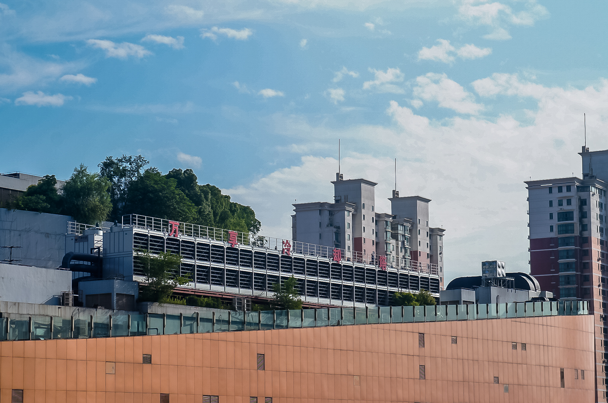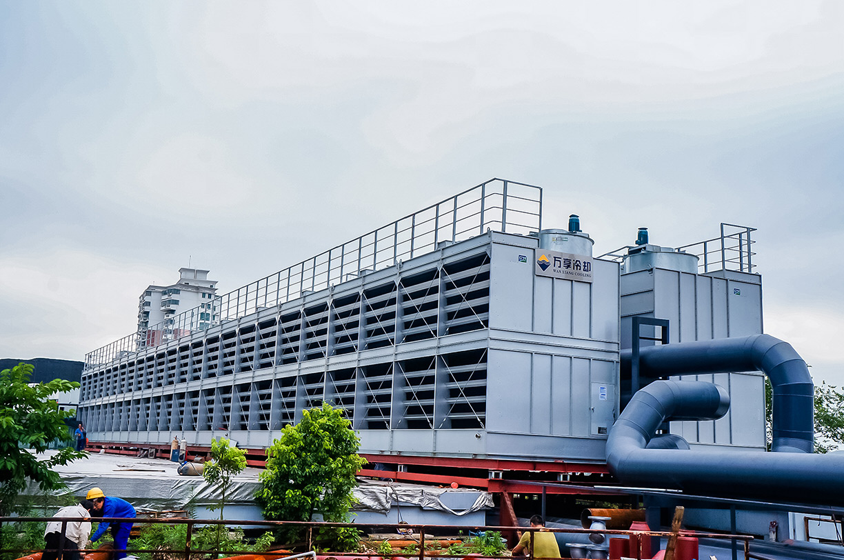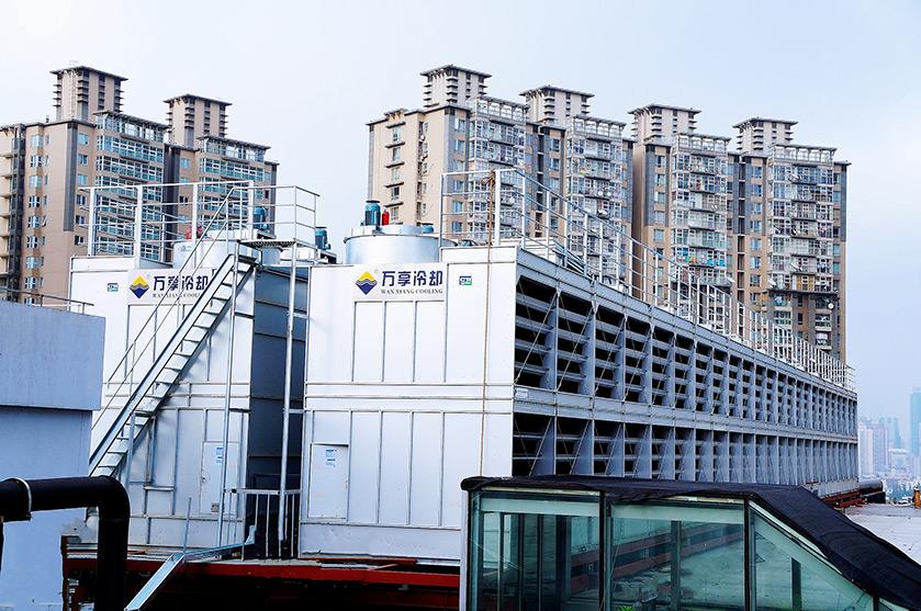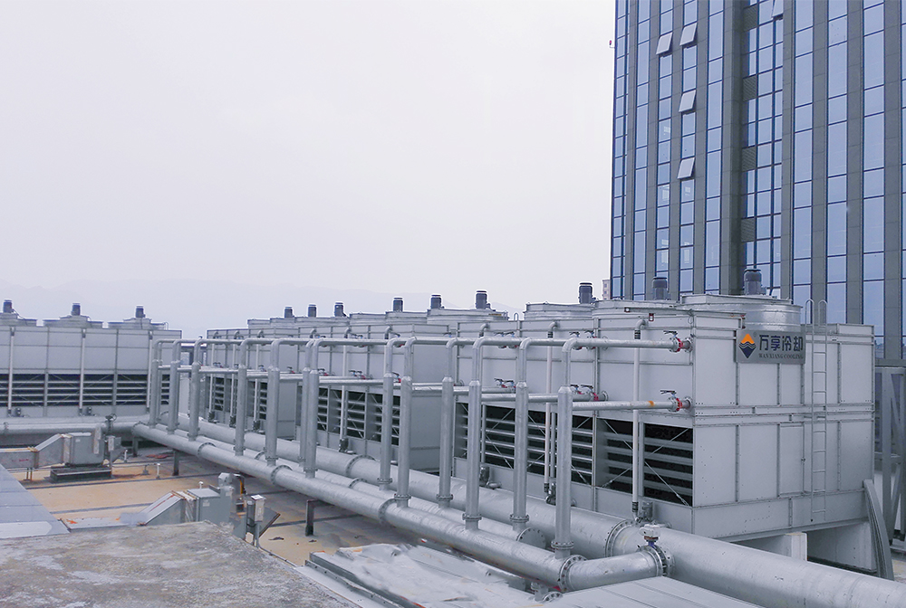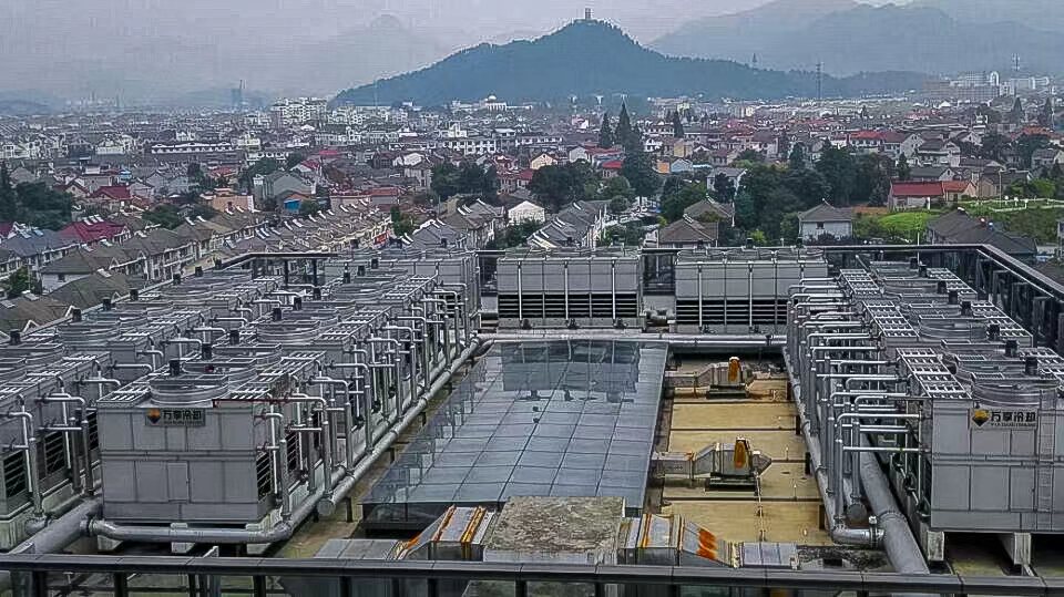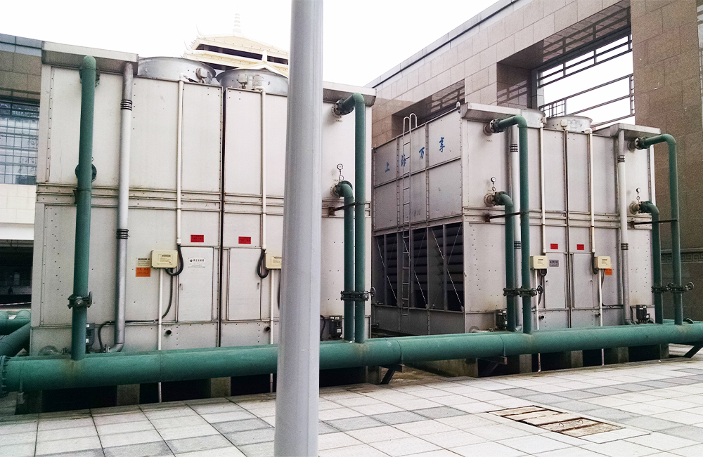 该商场的中央空调项目,系统总水量10000多吨,采用我司24台新型钢制侧流开式冷却塔,并把管路系统做了隐藏,完美的考虑了项目热力性能和整体美观。