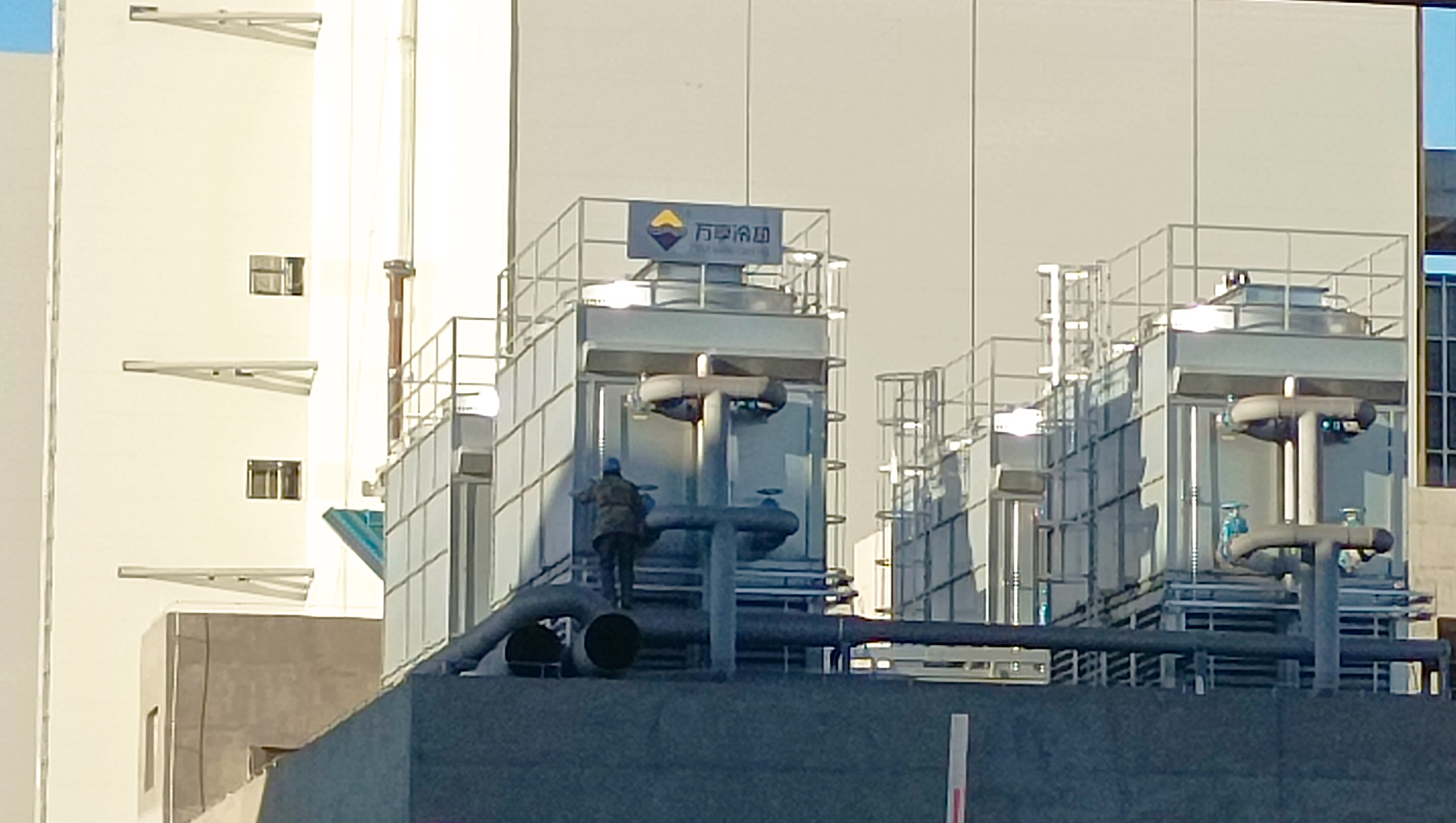 恒源集团的发电有限公司,其改造建设1×80MW高参数纯燃气自备发电机组蒸发式冷却设备项目,我司提供了工艺系统智慧运行设计,一期和二期均采用全钢制闭式冷却塔及辅机供货和系统施工。